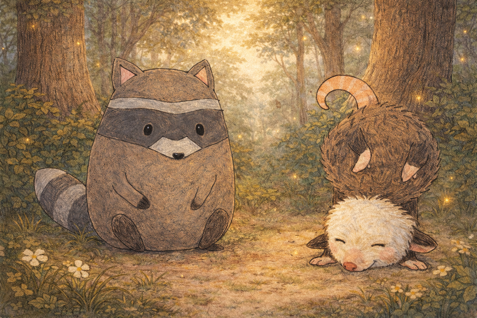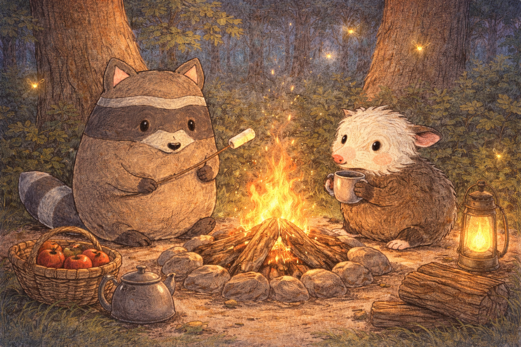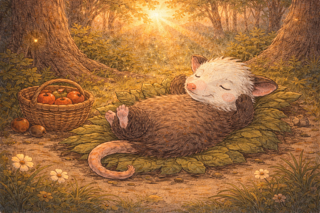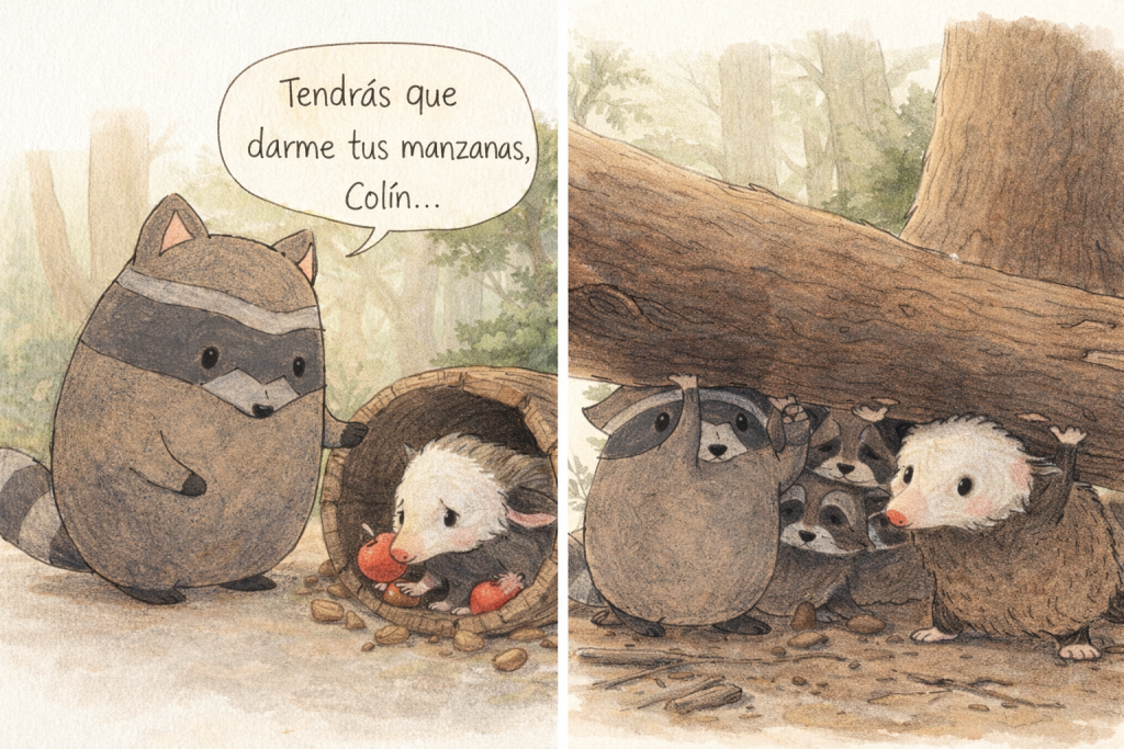 Colín, el tlacuache, que había estado trabajando todo el día recogiendo manzanas y nueces, solo quería disfrutar del atardecer y preparar su merienda.